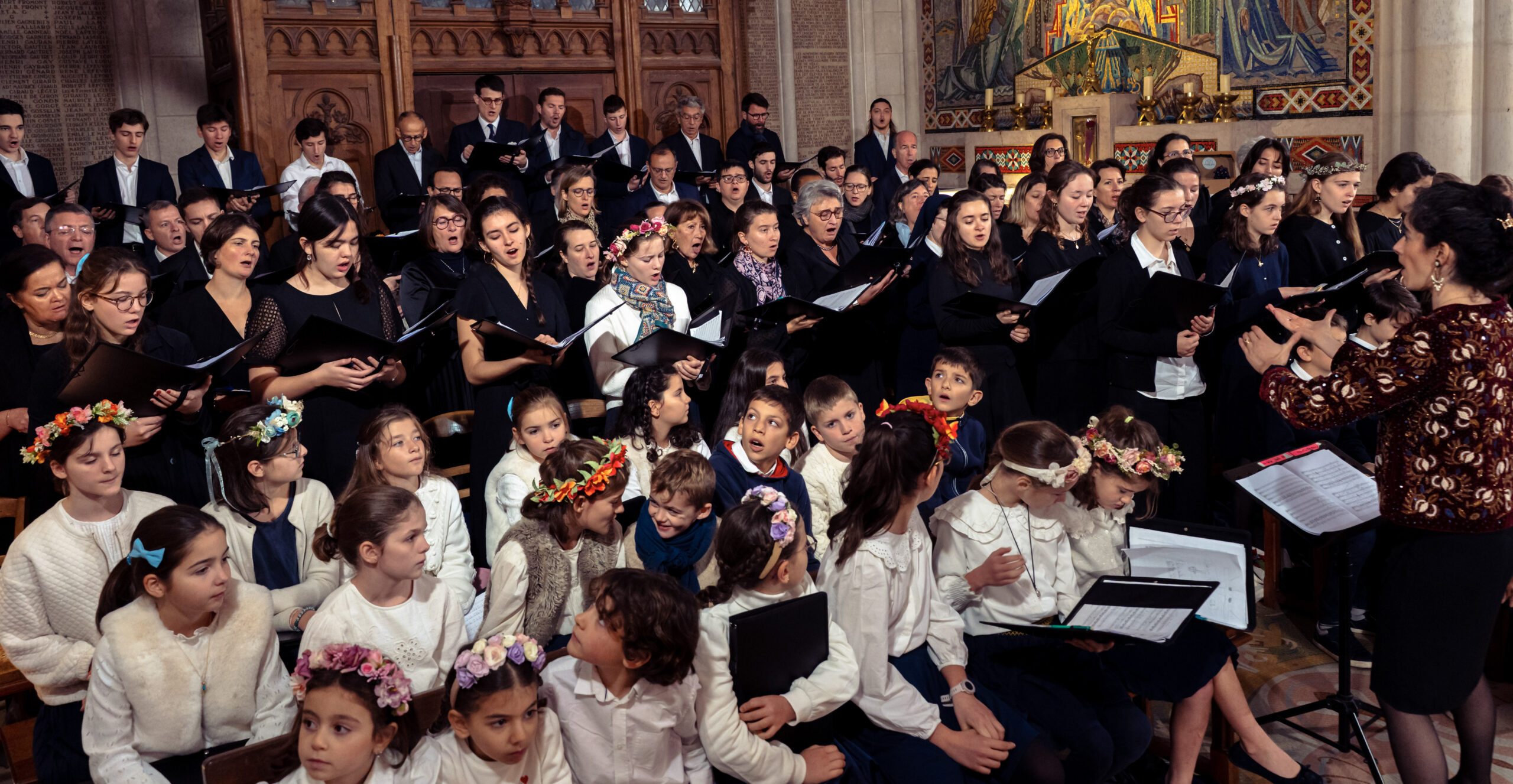 110 choristes des Petits Chanteurs de Rueil et des chœurs de Notre-Dame de La Salette rassemblés pour chanter cette fête de tous les saints!