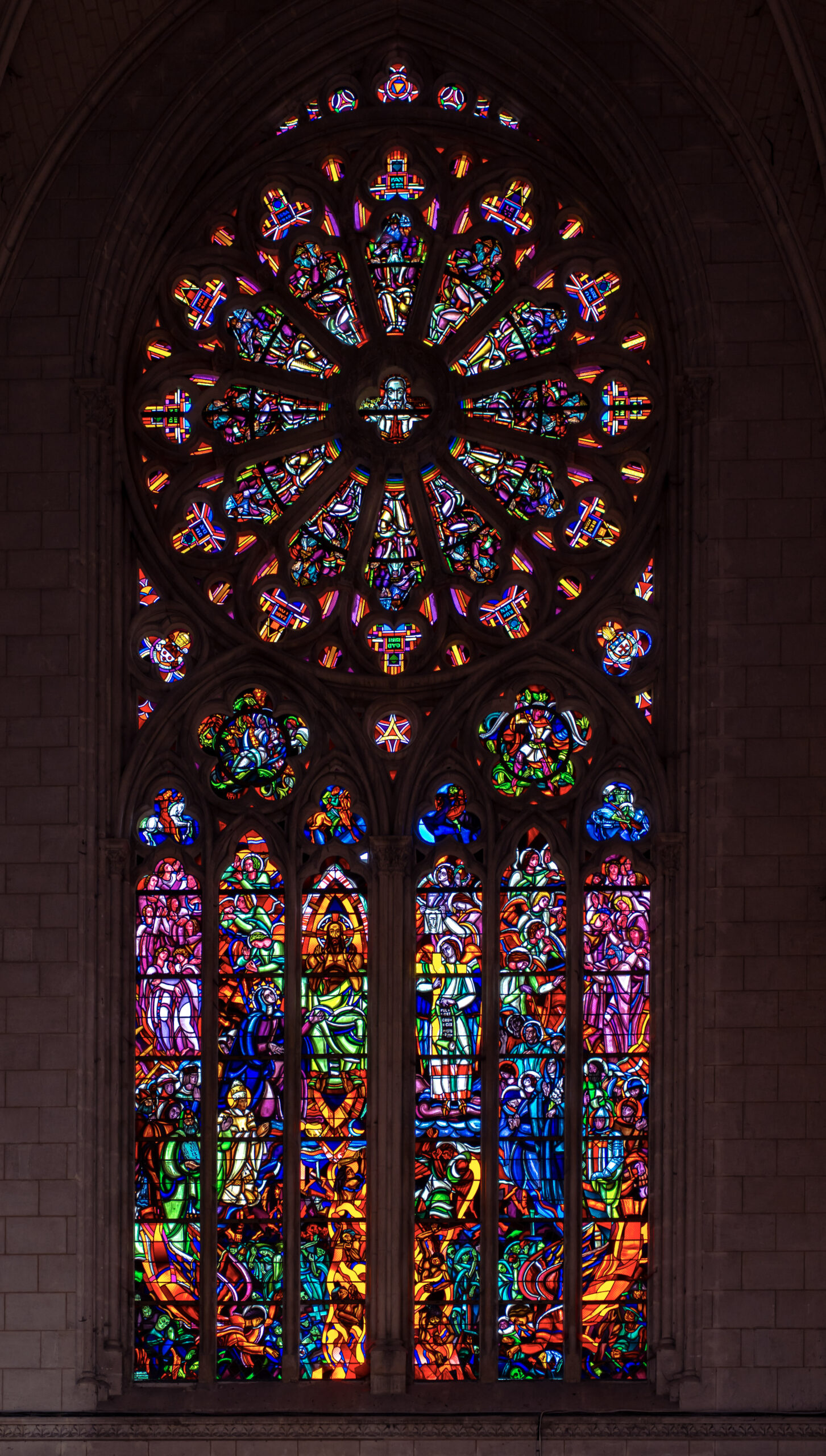 « Lorsque je me suis lancé dans cette nouvelle aventure de compositeur, j’ai souhaité écrire une œuvre qui puisse rester accessible à un public aussi large que possible, que ce dernier puisse participer, ce qu’il fit d’ailleurs, afin que nous puissions tous nous réunir autour de la lumineuse personnalité de sainte Geneviève ; il m’a semblé primordial de laisser la place à la Sainte, de mettre en avant sa vie telle qu’elle fut narrée par les sources les plus anciennes, et de mettre en correspondance tous ces évènements merveilleux avec des citations bibliques, mais aussi d’autres signatures comme vous avez pu le voir, et enfin ces phrases étonnantes de Simone Weil. La Sainte et son message sont intemporels et encore bien vivants aujourd’hui. Mon souci était de trouver l’expression la plus juste à chaque fois pour tailler chacun des soixante-huit petits cailloux aux contours variés qui forment ce collier inédit. J’ai effectué ce travail avec une grande joie, enchanté (c’est le cas de le dire) de rentrer dans les paroles et dans les actes courageux et généreux de la Sainte, de comprendre et de proclamer musicalement son abandon, sa confiance.